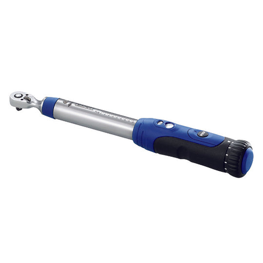 Cliquet 48 dents avec poignée confortable| Lecture directe de la valeur de couple| Rapide et facile à régler| Longue durée de vie| Précision +/ 4 %| Livrées en étui plastique noir, avec certificat détalonnage|Carré conducteur : 1/2"|Capacité : 20 - 100 N.m