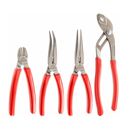 1 pince coupante diagonale : 192A.16G.||1 pince à bec demi-rond : 185A.20G.||1 pince à bec demi-rond : 195A.20G.||1 pince multiprise à glissière : 170A.25.||Livré en boîte carton.