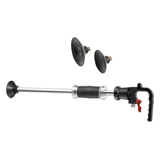 Pour retirer les bosses sur de grandes surfaces. Pour panneaux de portes et LUV.||Vide par venturi alimenté en air comprimé.||Livré avec 3 ventouses Ø80 mm 105 mm et 126 mm.||Livré dans une boîte en plastique.