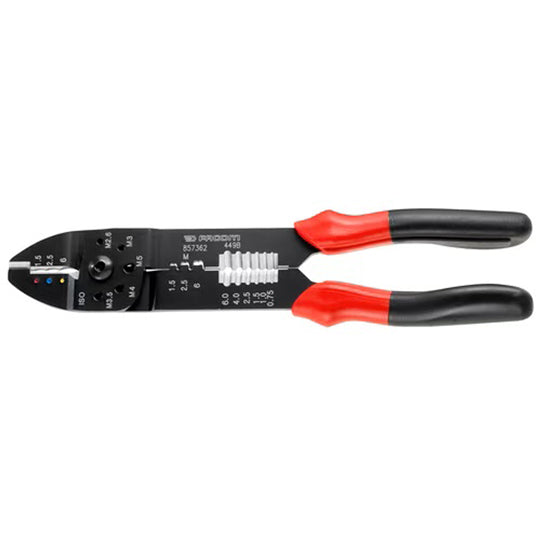 Sertissage pour cosses pré-isolés : 1,5-2,5-6 mm².||Sertissage pour cosses nues : 1,5-2,5-6 mm².||Dénudage : 0,75 à 6 mm².||Fonction coupe fil intégré.