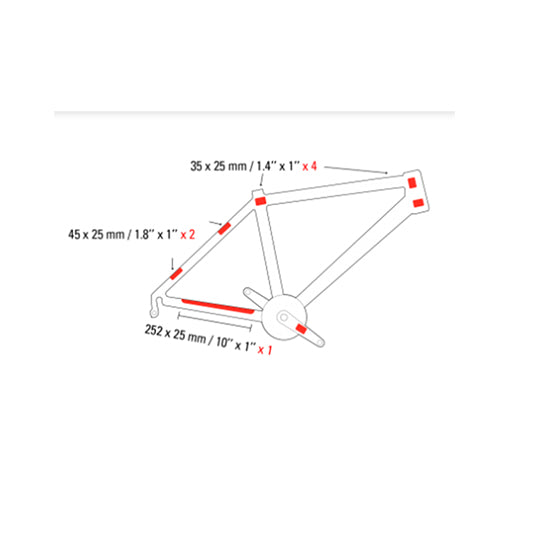 ÉTANCHE|Résistant à leau.| |RÉSISTANCE AUX U.V. | |RÉSISTANCE AUX VARIATIONS DE TEMPÉRATURE|Protection entre -30°C et + 100°C.| |TECHNOLOGIE GLUE SHIELD|Facile à appliquer. Pouvoir adhésif haute résistance.| |INVISIBLE|Transparent. Sadapte à tous les cadres de vélo